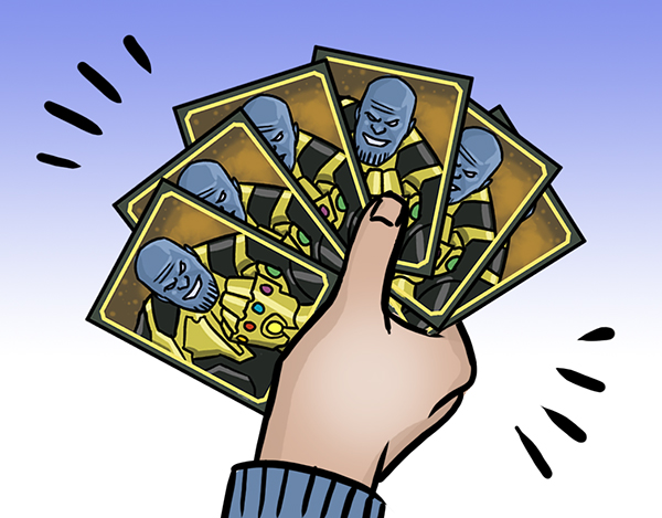 Resolvi fazer um experimento para tentar calcular esse valor. Mas, ao invés de usar o álbum da Copa, escolhi completar o álbum dos Vingadores, já que é um universo que eu tenho mais afinidade. Os valores originais são os seguintes: